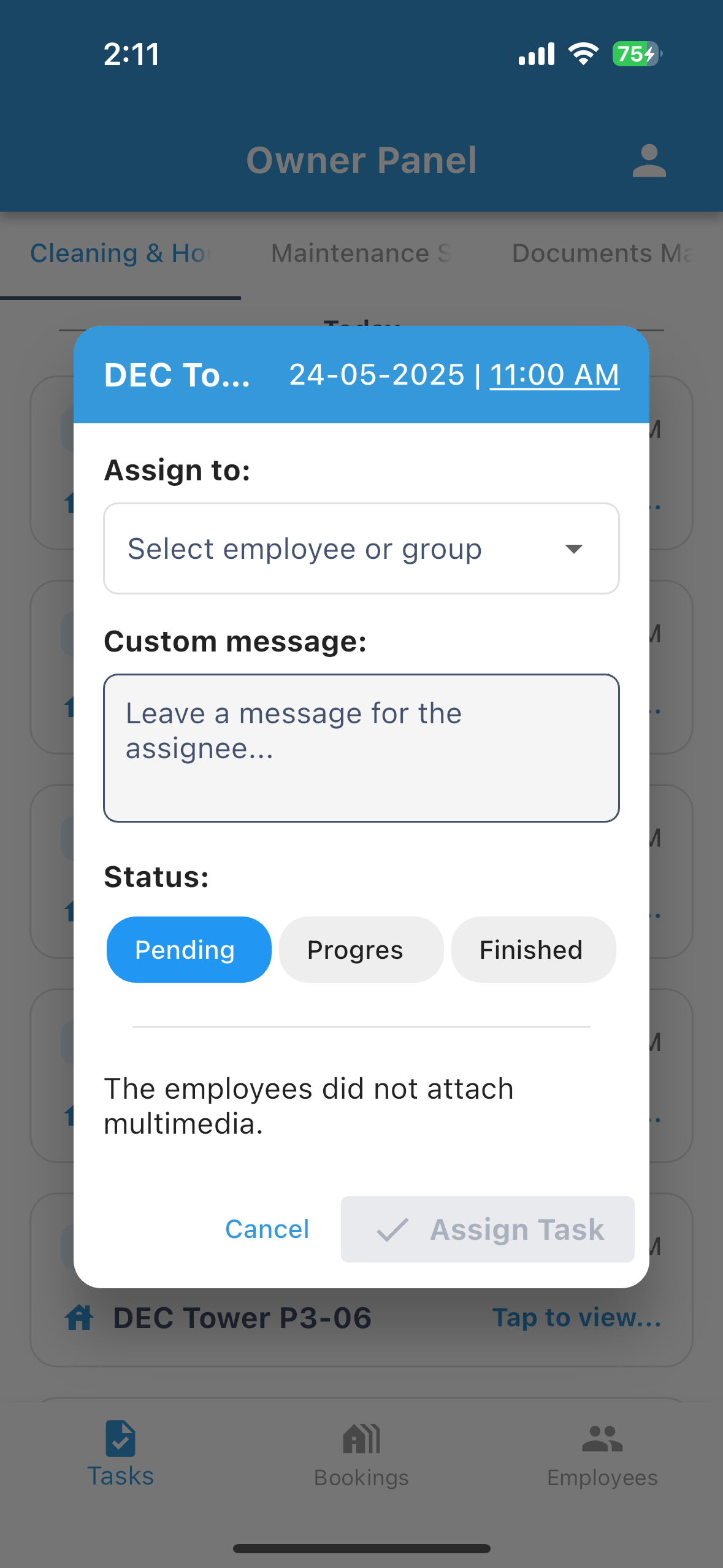 An app that organizes and centralizes all of Rentalho's operations in a single space: tenant check-in and check-out control, assignment and tracking of cleaning and maintenance tasks, employee management and supervision, collaborative task creation, and stock and inventory management, optimizing and streamlining workflow for efficient administration.